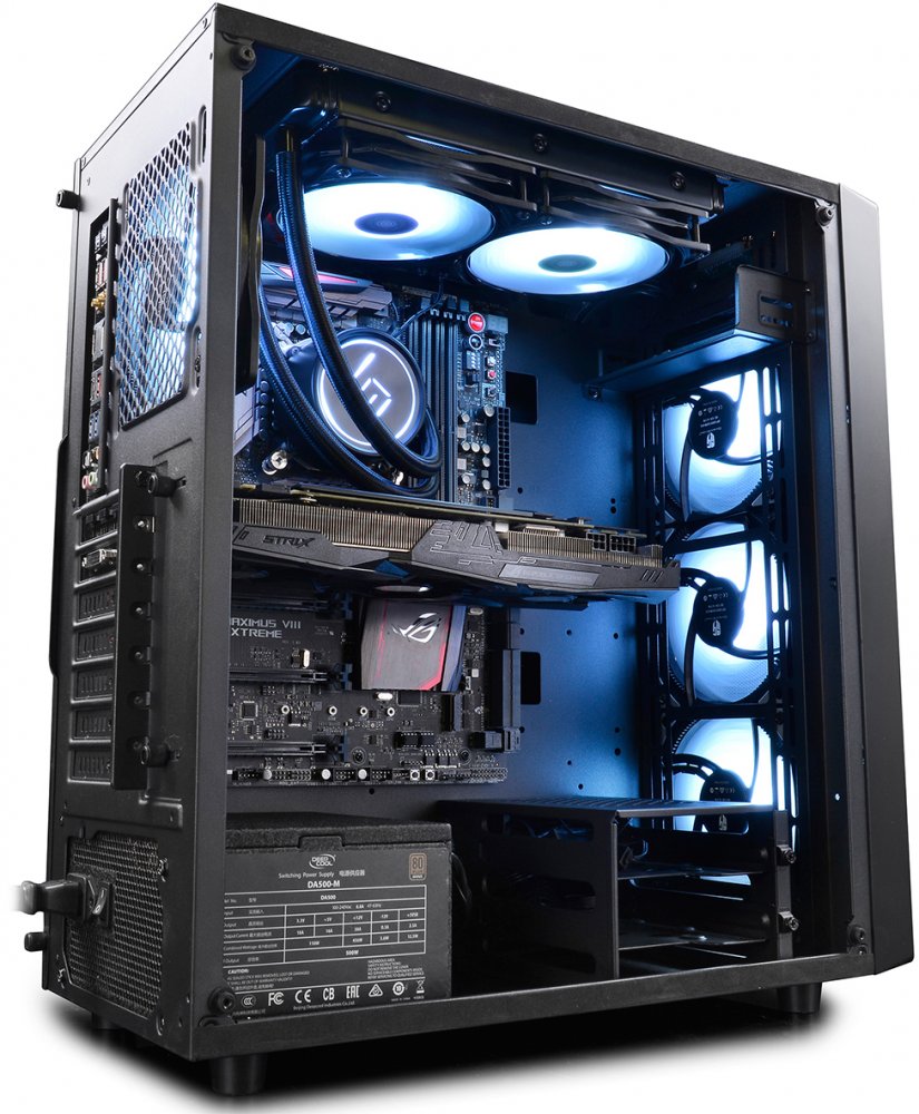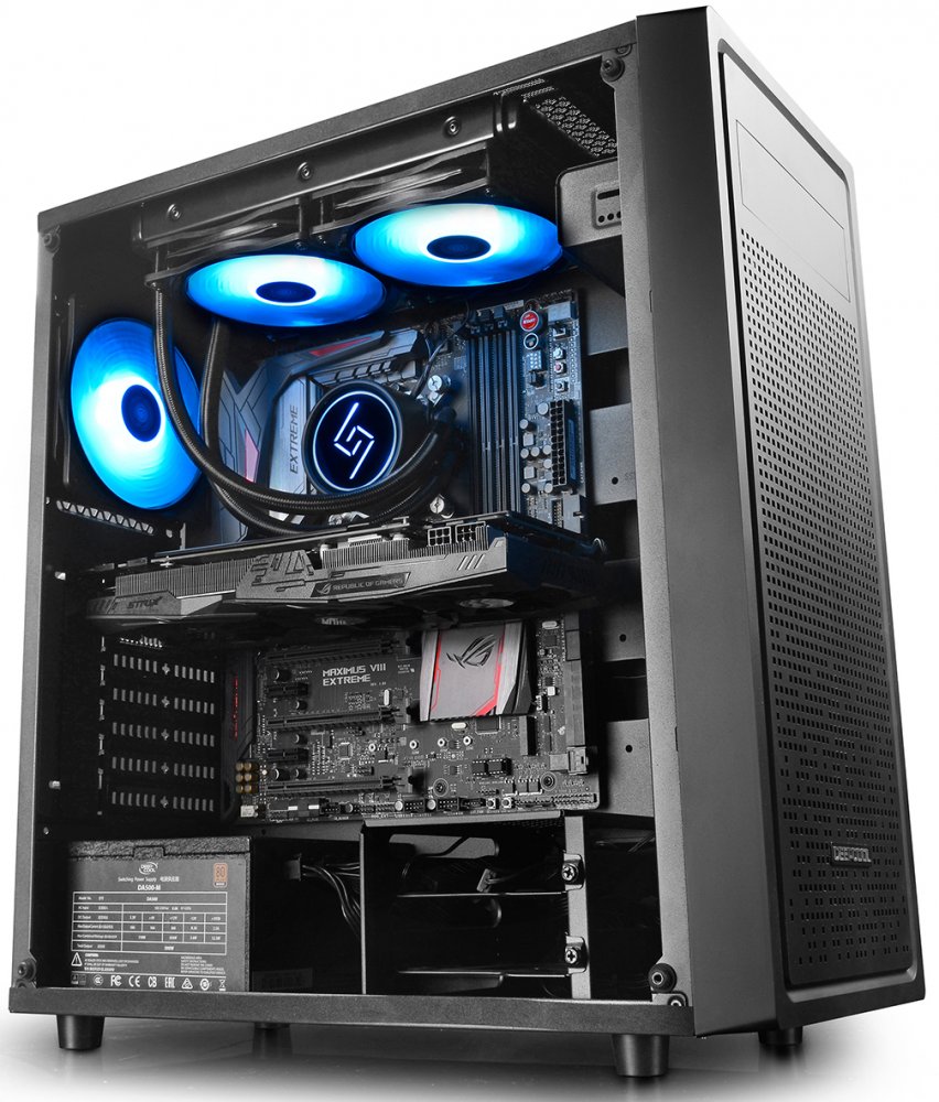 Места для доп. вентиляторов 2 x 140 мм на верхней панели, 3 x 140 мм на передней панели