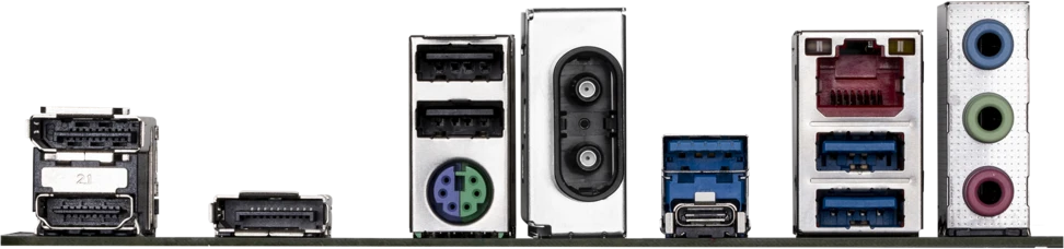 Разъемы на задней панели PS/2, 2 x USB 2.0, 3 x USB 3.2 Gen1, USB 3.2 Gen1 Type-C, HDMI, 2 x DisplayPort, RJ-45
