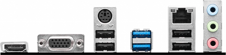 Разъемы на задней панели PS/2, 4 x USB 2.0, 2 x USB 3.2 Gen1, VGA, HDMI, RJ-45