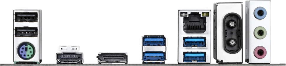 Разъемы на задней панели PS/2, 2 x USB 2.0, 4 x USB 3.2 Gen1, HDMI, DisplayPort, RJ-45