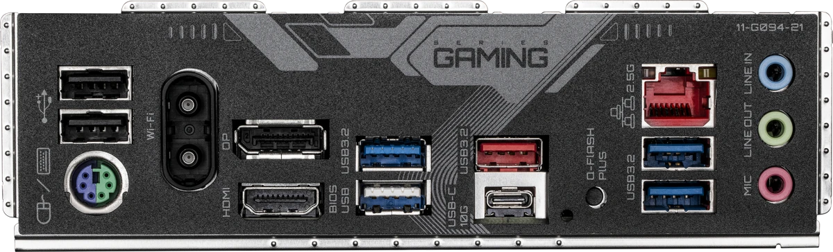 Разъемы на задней панели PS/2, 3 x USB 2.0, 3 x USB 3.2 Gen1, USB 3.2 Gen2, USB 3.2 Gen2 Type-C, HDMI, DisplayPort, RJ-45