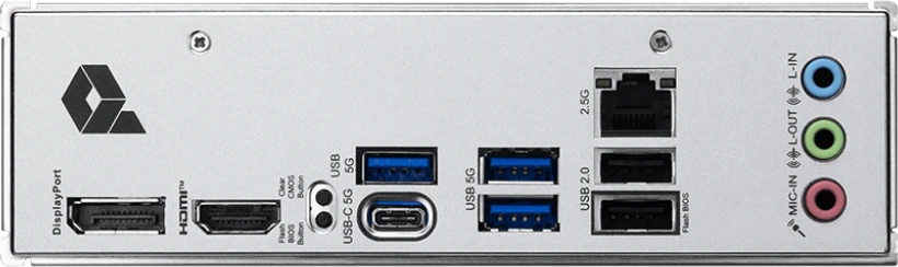 Разъемы на задней панели 2 x USB 2.0, 3 x USB 3.2 Gen1, USB 3.2 Gen1 Type-C, HDMI, DisplayPort, RJ-45